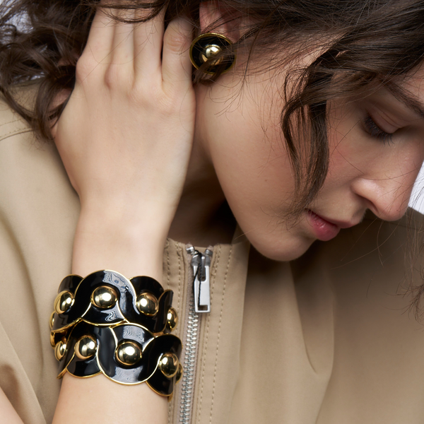 Bijoux de belle facture, rehaussés à l’or fin, les créations de Bangle-Up résultent du processus artisanal revisité de la laque et de l’émail. Un savoir-faire élaboré́ auquel le travail de la main reste intimement lié.