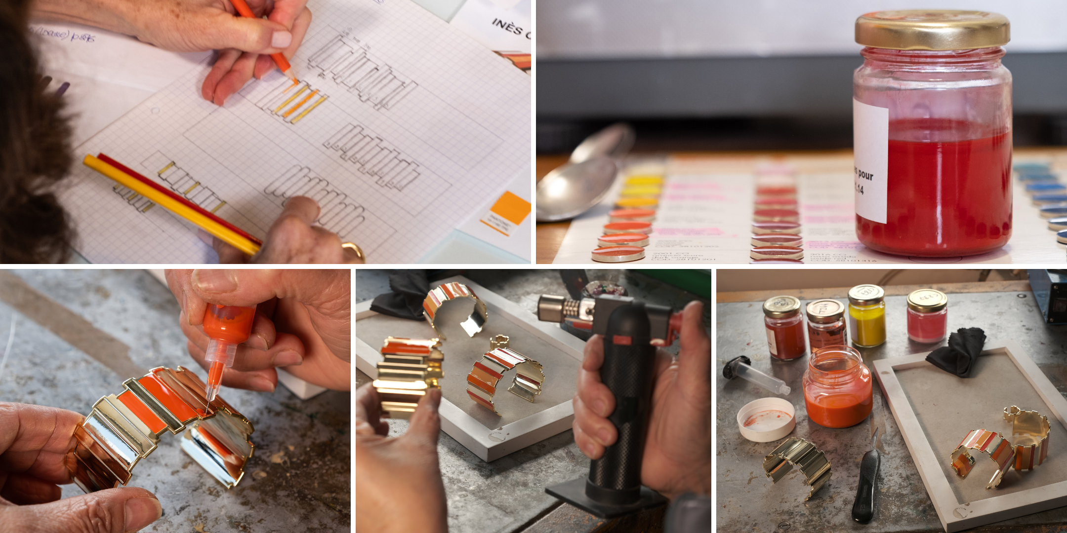 Tous nos bijoux sont ornés d’émail ou de laque colorés.