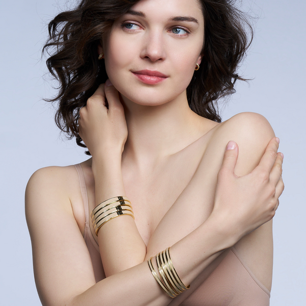 Sobres et raffinés, actuels et intemporels, nos « Bangle » cultivent subtilement l’harmonie des contraires. Bangle-Up s'inspire de la forme originelle du « Bangle » et propose des imprimés colorés. Un « parti-print » qui d’emblée a fait sa singularité́ ! Ce classique, au fil du temps, s’est constamment renouvelé́. Il s’est d’abord réinventé́ à travers des motifs différenciants puis, il s’est progressivement décliné́ en une famille de pièces complémentaires : des joncs, des manchettes, des bagues, des boucles d’oreilles et des colliers.